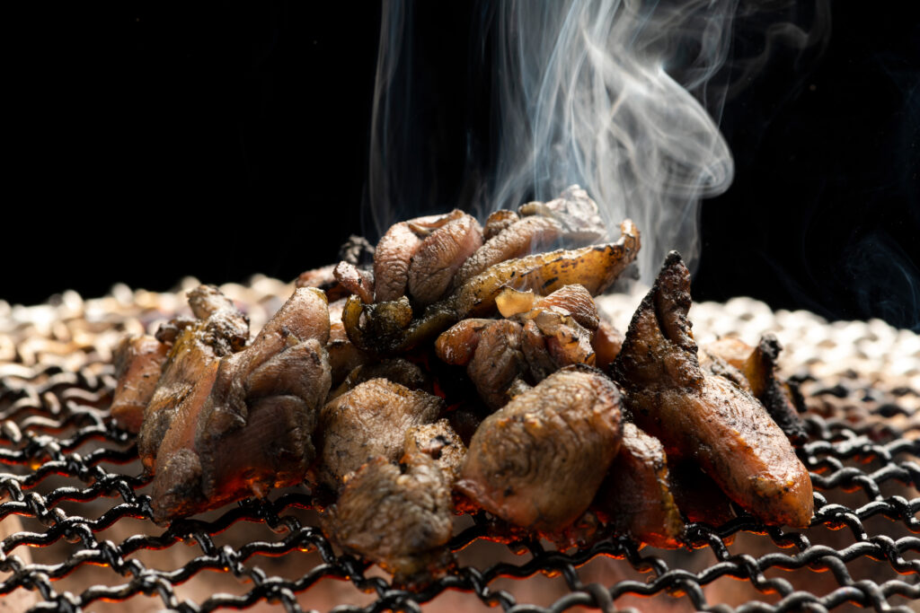 純けいの最も定番の食べ方は、やはり焼き鳥です。塩焼きやタレ焼きなど、様々な味付けで楽しむことができます。