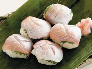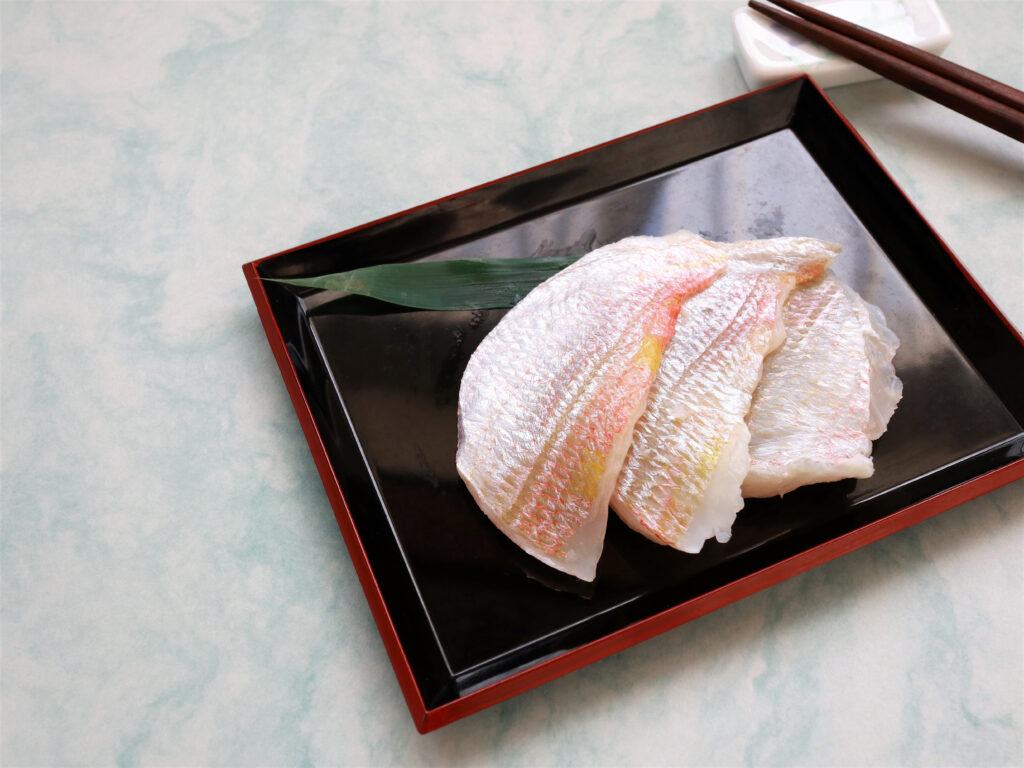 小鯛の笹漬けには、日本海で捕れた新鮮な連子鯛(レンコダイ)使用します。獲れたばかりの小鯛を丁寧に選別し、鮮度と品質を厳しくチェックします。